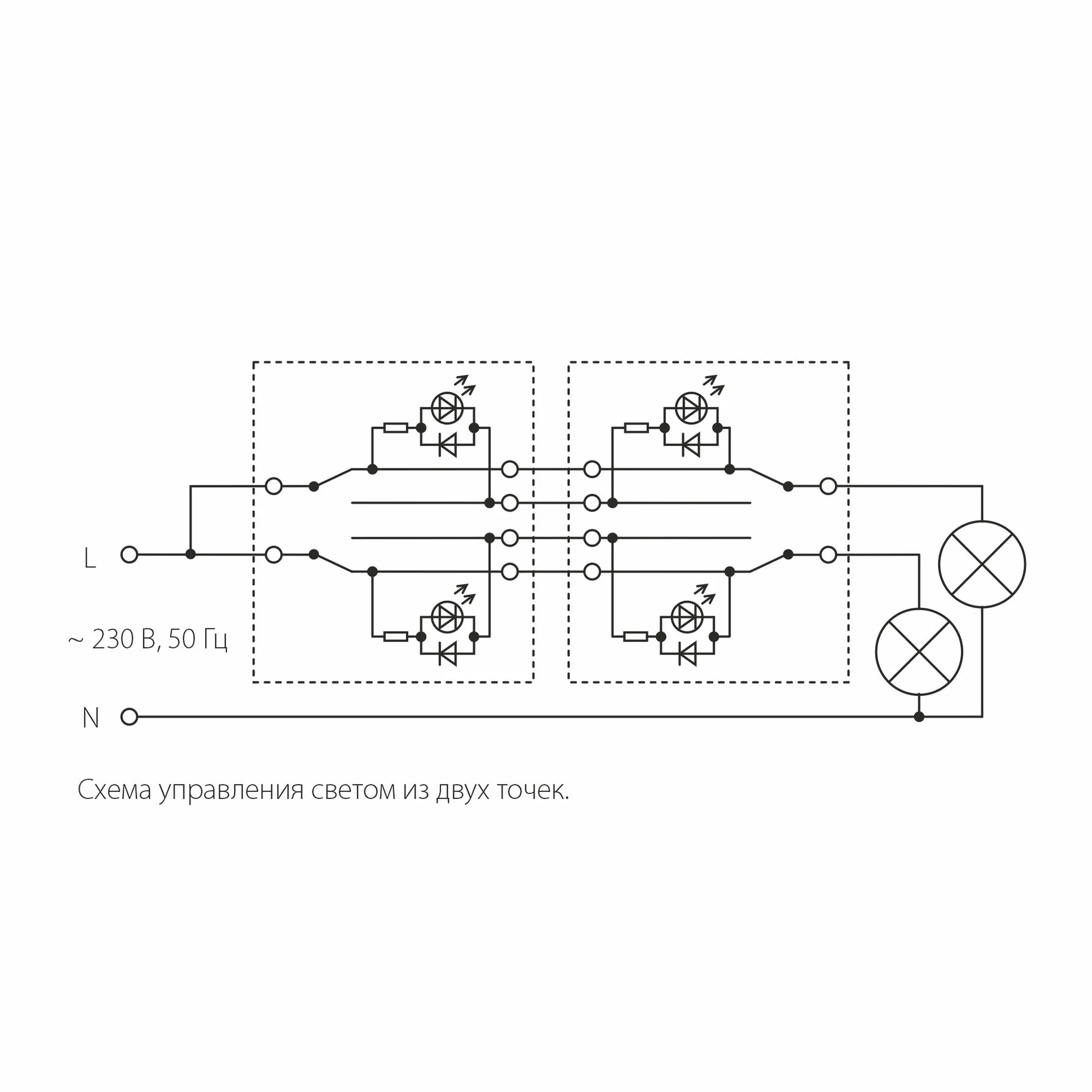 Выключатель двухклавишный проходной с подсветкой (cеребряный рифленый) W1122109